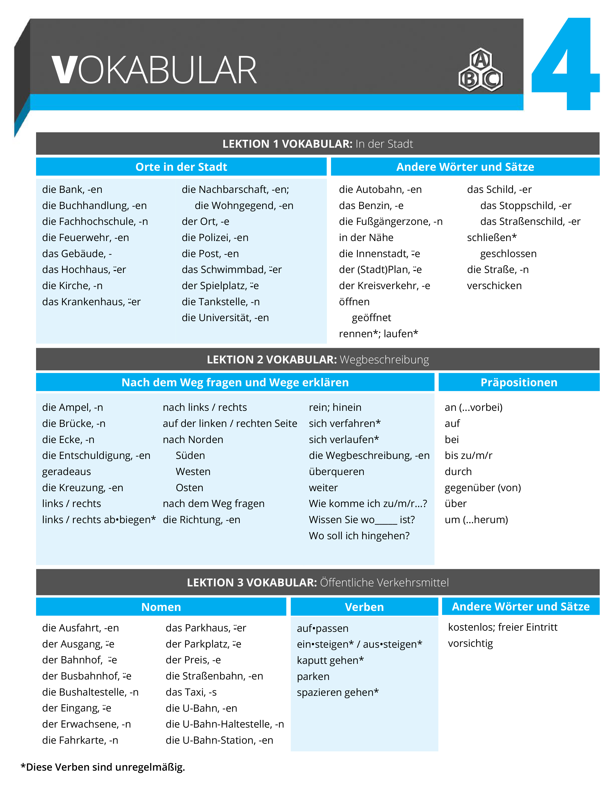 You will find the necessary vocabulary for each chapter/section in vocabulary lists, which also come with recordings of each word and phrase. Thus, students have the chance to listen to and repeat each word as often as they want until they are confident and comfortable with the pronunciation of each word.