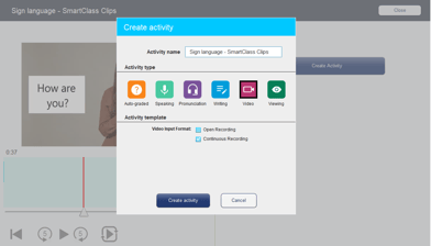 There are 20 different templates for activities in SmartClass online teaching platform. You can upload PDF, Images, Audio, and Video files or author your own audio/video file right in the software (like recording a lesson and sending it to your students outside of class)